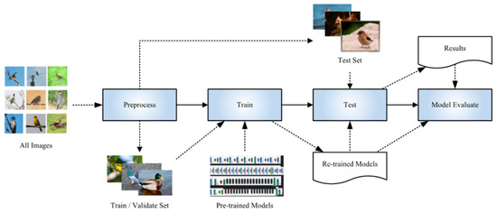 In recent years, deep learning [15,16] has made remarkable achievements [17] in computer vision [18,19]. Deep learning has yielded great improvements in object detection [20], object recognition [21], scene recognition [22], image segmentation [23], and other tasks. Deep learning techniques, such as deep convolutional neural networks (DCNNs), have also attracted the attention of ecologists. DCNNs can automatically learn from data. Taking image classification tasks as an example, DCNNs can automatically learn features for classification from a large number of input images, without relying on human domain knowledge. This remarkable advantage makes researchers only need to collect corresponding data according to the target when using this technology, instead of making various attempts for feature selection and extraction. To assist ecologists and zoologists in rapidly and effectively processing large-scale bird image data, computer vision research has long dealt with bird image analysis-related problems, such as bird detection [24], the counting of crowded birds [25,26], fine-grained classification [27,28,29,30] of birds, and even individual recognition with small birds [31], using DCNNs. DCNNs have achieved surprising results in these tasks.