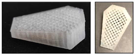 For the fabrication of implants, the fused deposition modeling (FDM) technique of 3D printing was used, employing a 3D printer Anet 8, clone’s Prusa i3 (Dot Go 3D Technology Corporation, Xiangtan, China). The design was carried out using Sketchup software (Trimble Inc., Limited Sunnyvale, California, EEUU) as a scaffold with a polygonal wedge form with an internal grating form (Figure 2). Its digital dataset was saved as a stereolithography file (STL). The width, depth, and length of the implant were calculated according to the proximal tibia anatomy (Figure 3). Slice software Cura 2.3 was used to generate G code for the printer, and the printing software was Repetier Host V 2.0.1 (Hot-WorldGmBH and Co., Knickelsdorf, Germany).