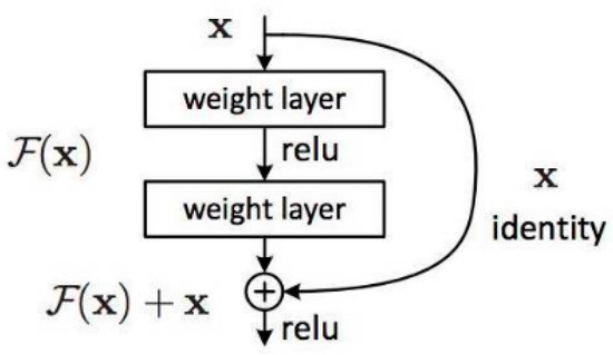 Resnet is a convolutional neural network proposed by Kaiming He from Microsoft Research, alongside three other people. It won the prize for image classification and object recognition as part of the ImageNet Large Scale Visual Recognition Challenge (ILSVRC) in 2015 [25]. The characteristics of this residual network include the fact that it is easy to optimize and the fact that it can increase the accuracy of recognition with the addition of considerable depth. The internal residual block uses jump connections, which alleviate the problem of the vanishing gradient caused by increasing depth in a deep neural network. An overview of the residual network is shown in Figure 2.