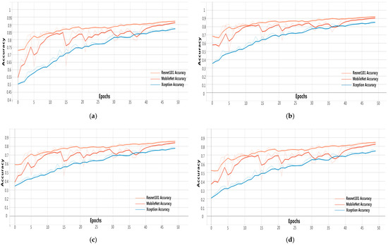 - Based on the dataset used in this paper, the Resnet training lasted 7 h and 30 min, the Xception training lasted 7 h and 23 min, and the MobileNet training lasted 1 h and 50 min.