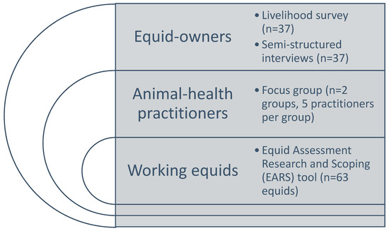 As early as 1998, it was identified that, in less economically developed countries, ‘veterinary services have almost universally been modelled on those of donor countries, with little consideration given to the host country’s particular cultural, economic, and other conditions’ [15] (p. 146). Subsequently, interventions have, for too long, been developed by equid welfare organisations working as ‘silos’ [16] (p. 11), failing to communicate or collaborate towards common goals and building strategies upon assumptions rather than empirical fact.