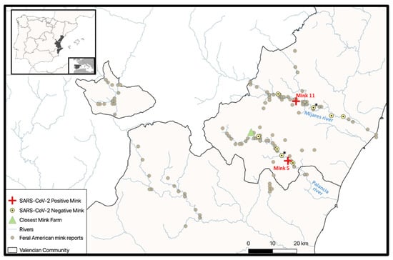 Chicago/Turabian StyleAguiló-Gisbert, Jordi, Miguel Padilla-Blanco, Victor Lizana, Elisa Maiques, Marta Muñoz-Baquero, Eva Chillida-Martínez, Jesús Cardells, and Consuelo Rubio-Guerri. 2021. "First Description of SARS-CoV-2 Infection in Two Feral American Mink (Neovison vison) Caught in the Wild" Animals 11, no. 5: 1422. https://doi.org/10.3390/ani11051422