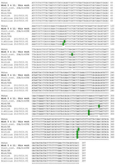 - ProMED-Mail. Coronavirus Disease 2019 Update (366): Animal, USA (Utah) Mink. 2020. Available online: https://promedmail.org/promed-posts/?id=7692815 (accessed on 24 April 2021).