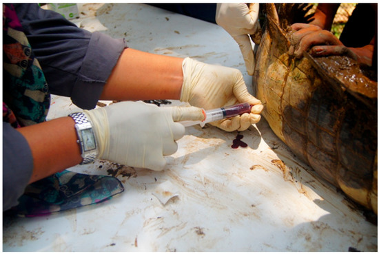 Knowledge about the haematological and serum biochemistry values of false gharial and other reptiles has been used as an aid or guide in the detection and diagnosis of various hemoparasites, and other infectious diseases, such as chlamydiosis and poxvirus infection [11,12]. The haematology and serum biochemical values in false gharial were preliminary investigated by [13] in a captive individual in Thailand, where parameters such as the haematocrit, haemoglobin concentration, erythrocytes count, leukocytes count, thrombocyte count, red cell indices, and 17 serum biochemistry parameters were analysed, with significant differences between male and female group in detected only in and the red cell indices (MCHC).