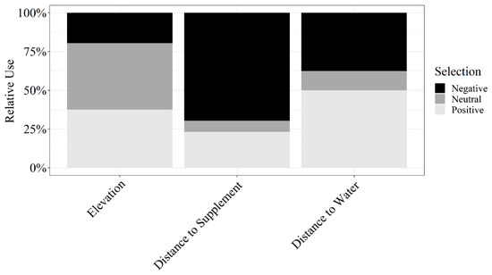 Influence of elevation, distance to supplement, and distance to water on relative use by cattle grazing dormant northern mixed-grass prairie in 2018/2019 and 2019/2020 at the Northern Agriculture Research Center’s Thackeray Ranch, Havre, MT, USA.