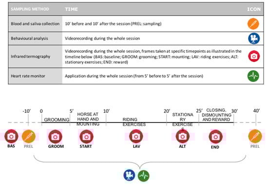 The experimental procedure is plotted in Figure 1, which provides a detailed description of collection methods of physiological and behavioural data from the horses enrolled in the study.
