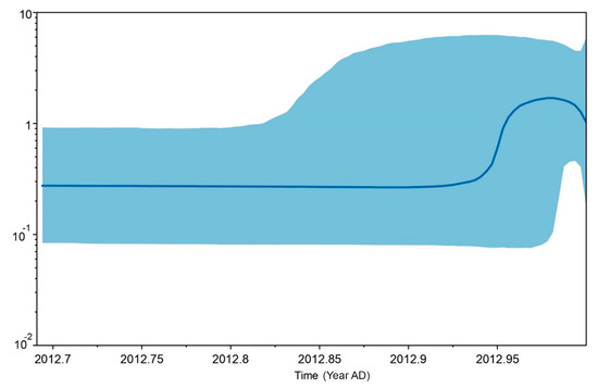 - Heled, J.; Drummond, A.J. Bayesian inference of population size history from multiple loci. BMC Evol. Biol. 2008, 8, 289. [Google Scholar] [CrossRef]