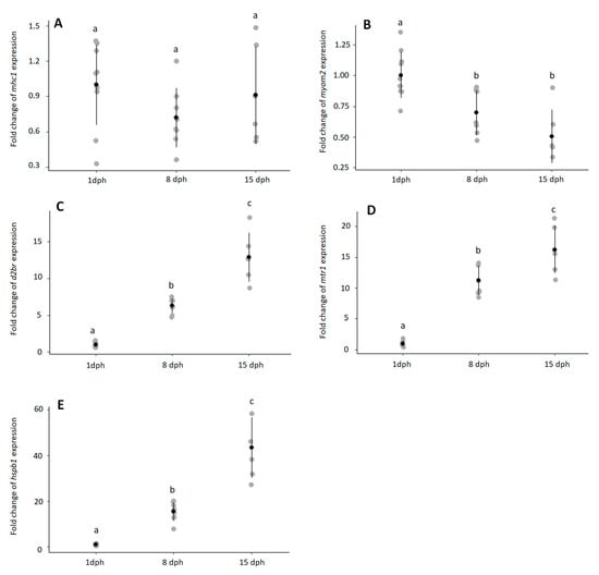 - Sarropoulou, E.; Kotoulas, G.; Power, D.; Geisler, R. Gene expression profiling of gilthead sea bream during early development and detection of stress-related genes by the application of cDNA microarray technology. Physiol. Genom. 2005, 23, 182–191. [Google Scholar] [CrossRef]