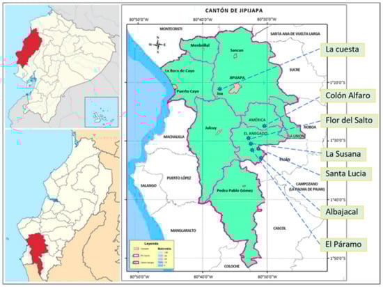 - El Diario. Manabí por Cantones cuarta edición/2011/El Diario. 2012. Available online: https://issuu.com/eldiarioec/docs/pdf_jipijapa (accessed on 13 April 2021).