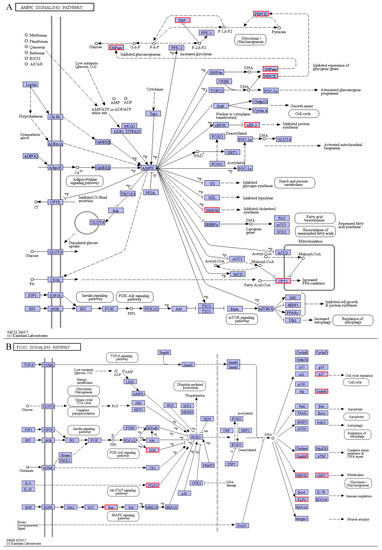 AMPK signaling pathway (A) and FOXO signaling pathway (B).
