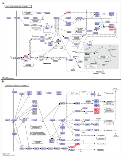 Glucagon signaling pathway (A) and insulin signaling pathway (B).