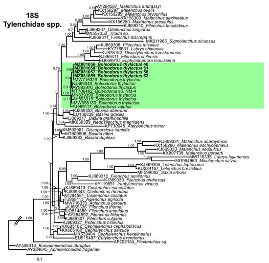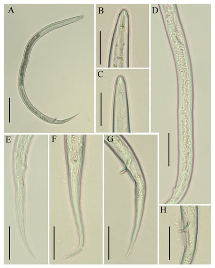 - Qing, X.; Decraemer, W.; Claeys, M.; Bert, W. Molecular phylogeny of Malenchus and Filenchus (Nematoda: Tylenchidae). Zool. Scr. 2017, 46, 625–636. [Google Scholar] [CrossRef]