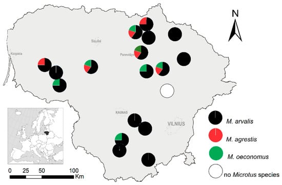 - Kryštufek, B.; Vohralík, V.; Zima, J.; Zagorodnyuk, I. Microtus agrestis (errata version published in 2017). The IUCN Red List of Threatened Species. 2016. Available online: https://www.iucnredlist.org/species/13426/115112050 (accessed on 16 June 2021).