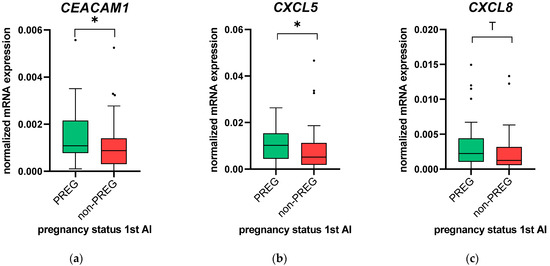 3.3. Effect of Endometrial Neutrophil Infiltration and mRNA Expression on the Time to Pregnancy