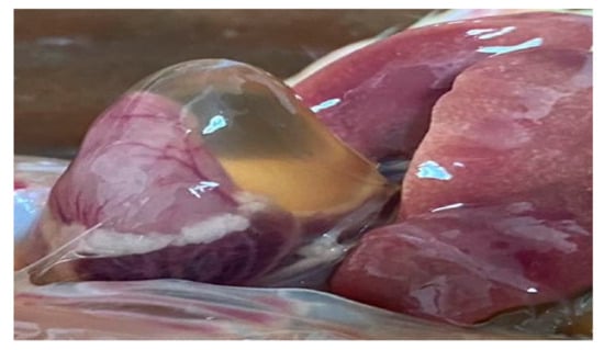 In this regard, the necropsies performed on broilers (10 days old) that consumed alkaline water due to the use of sodium bicarbonate showed evidence of accumulation of water in the abdominal area (ascites) in 100% of the animals (Figure 2), which could influence the high mortality recorded in broilers (14%). The results obtained in this study are supported by Ahmadipour et al. [43], who maintains that high ppm of TDS triggers ascites in broilers. The ascites syndrome is characterized by right congestive heart failure, with generalized hydrostatic venous hypertension, right heart hypertrophy and edema [44]. Currently, improvements in genetics and diet have decreased the incidence of ascites syndrome; however, T3, with an increase in electrical conductivity, total dissolved solids and salinity (Table 2), provoked this pathological condition in broilers [24,25]. It should be noted that this study could contribute to understanding the incidence of ascites syndrome in poultry units that use brackish drinking water from wells, mainly near the coast.