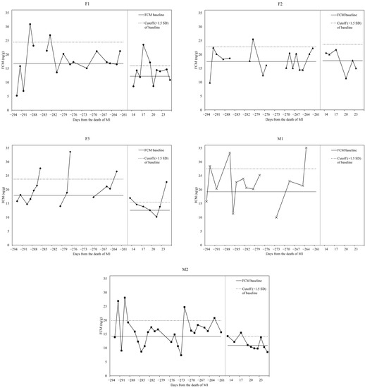 | Individual | Time | FCM (ng/g) | Proportion of Peaks | ||