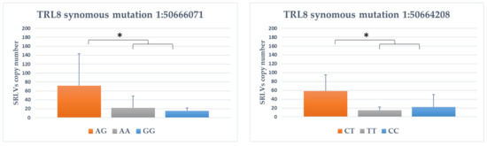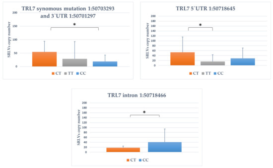 Figure 1. The association between genotype within TLR7 genes and SRLVs copy number. *: p < 0.05.