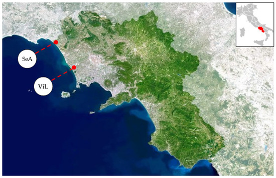 Map showing locations of the sampling sites: Villa Literno (ViL) and Sessa Aurunca (SeA).