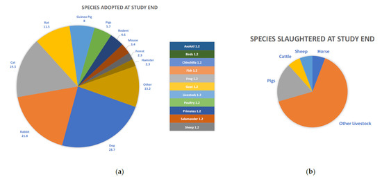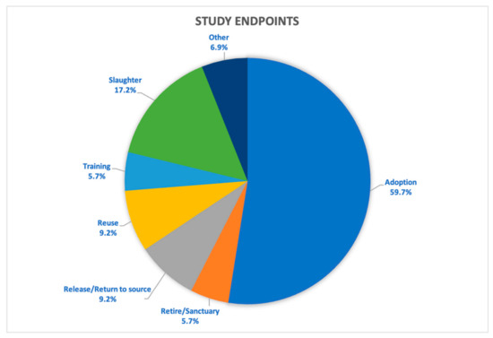 Species most likely to be considered for endpoints other than euthanasia, including (a) adoption and (b) food production.