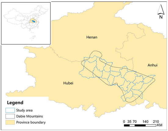 Study area in the Dabie Mountains, China. KM means kilometer.