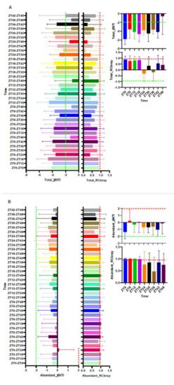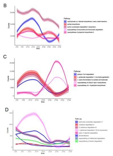 - Thaiss, C.A.; Levy, M.; Korem, T.; Dohnalova, L.; Shapiro, H.; Jaitin, D.A.; David, E.; Winter, D.R.; Gury-BenAri, M.; Tatirovsky, E.; et al. Microbiota Diumal Rhythmicity Programs Host Transcriptome Oscillations. Cell 2016, 167, 1495. [Google Scholar] [CrossRef] [Green Version]