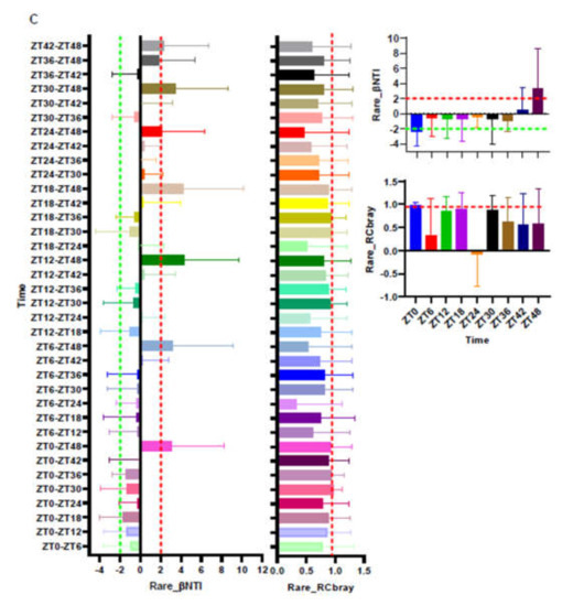 2.5. Diurnal Analysis of Microbiome Data Sets and MNTD Taxonomic β-Diversity Metrics