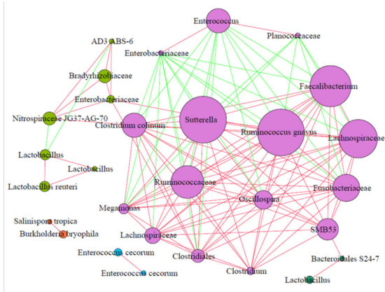 3.5. Cooccurrence Networks of Feces Bacteria