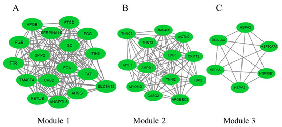 - Bader, G.D.; Hogue, C.W. An automated method for finding molecular complexes in large protein interaction networks. BMC Bioinform. 2003, 4, 27. [Google Scholar] [CrossRef]