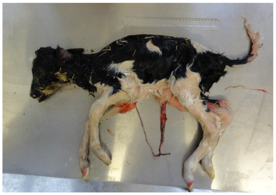 When studying the causes of abortion or PM, infection is always more commonly detected in aborted than in stillborn fetuses [15,16,17]. In PM cases, signs of infection were detected in 10–21% of cases among different studies [16,18]. The low percentage of PM cases diagnosed with infection may be the result of the varying methodologies of different research studies. The fact that in a significant proportion of undiagnosed cases, signs of inflammation (e.g., encephalitis, hepatitis, myocarditis, placentitis, pneumonia, pleuritis, other) were found at necropsy [19] suggests that the occurrence of intrauterine infection in cattle is underestimated. Diagnosing an intrauterine infection following necropsy is less frequent where material for detailed diagnostic tests is collected only in cases when there are gross lesions and cases without gross lesions are not tested for infection [1,16]. In contrast, where all calves are examined for the presence of bacteria (samples cultured aerobically, anaerobically, and in microaerobic conditions), viruses (BVDV, BoHV-1, SBV), and Neospora caninum, pathogen-specific diagnosis rates can be higher [18]. In one recent study, approximately one in five PM calves were exposed to a pathogen during pregnancy [18]. Such an exhaustive investigation is not always possible due to the associated costs. The most recent review of the classical diagnostic approaches to infectious causes of PM is found in Mee et al. [20].