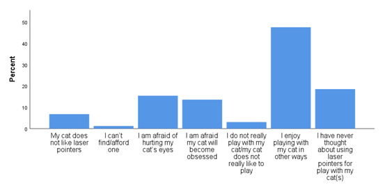 Reasons given by cat guardians for not currently (or ever) using laser light pointers to play with their cats (n = 336).