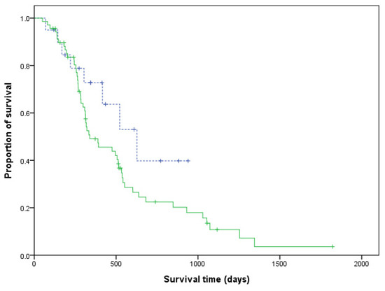 | Median survival time (days) | 344 | 314 | 0.131 |