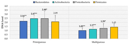 Levels of Main Bacterial Phyla in the Gastrointestinal Tract of Sheep Depending on Parity and Age