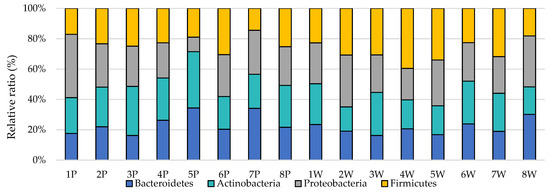 | Bacteroidetes [14] | 798cfbF (5′-CRA ACA GGA TTA GAT ACC CT) | cfb967R (5′-GGT AAG GGT TCC TCG CGT AT) |