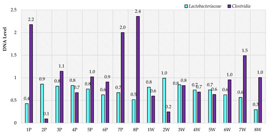 - Walter, J.; Hertel, C.; Tannock, G.W.; Lis, C.M.; Munro, K.; Hammes, W.P. Detection of lactobacillus, pediococcus, leuconostoc, and weissella species in human feces by using group-specific PCR primers and denaturing gradient gel electrophoresis. Appl. Environ. Microbiol. 2001, 67, 2578–2585. [Google Scholar] [CrossRef] [Green Version]