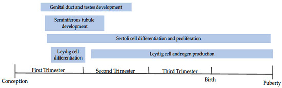 A timeline depicting the development of the bull and ram reproductive tracts. Events included are discussed within the review. Adapted from [58,59,60].