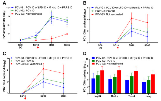 - Haake, M.; Palzer, A.; Rist, B.; Weissenbacher-Lang, C.; Fachinger, V.; Eggen, A.; Ritzmann, M.; Eddicks, M. Influence of age on the effectiveness of PCV2 vaccination in piglets with high levels of maternally derived antibodies. Vet. Microbiol. 2014, 168, 272–280. [Google Scholar] [CrossRef]
