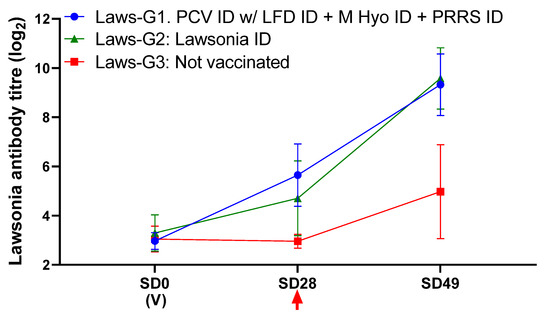 Chicago/Turabian StyleHorsington, Jacquelyn, Maarten Witvliet, Antonius A. C. Jacobs, and Ruud P. A. M. Segers. 2021. "Efficacy of Simultaneous Intradermal Vaccination of Swine against Porcine Circovirus 2, Porcine Reproductive and Respiratory Syndrome Virus, Mycoplasma hyopneumoniae and Lawsonia intracellularis" Animals 11, no. 8: 2225. https://doi.org/10.3390/ani11082225