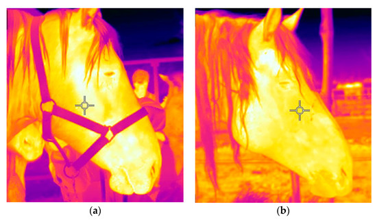 - Jansson, A.; Lindgren, G.; Velie, B.D.; Solé, M. An investigation into factors influencing basal eye temperature in the domestic horse (Equus caballus) when measured using infrared thermography in field conditions. Physiol. Behav. 2021, 228, 113218. [Google Scholar] [CrossRef]