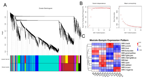 - Langfelder, P.; Horvath, S. WGCNA: An R package for weighted correlation network analysis. BMC Bioinform. 2008, 9, 559. [Google Scholar] [CrossRef] [Green Version]