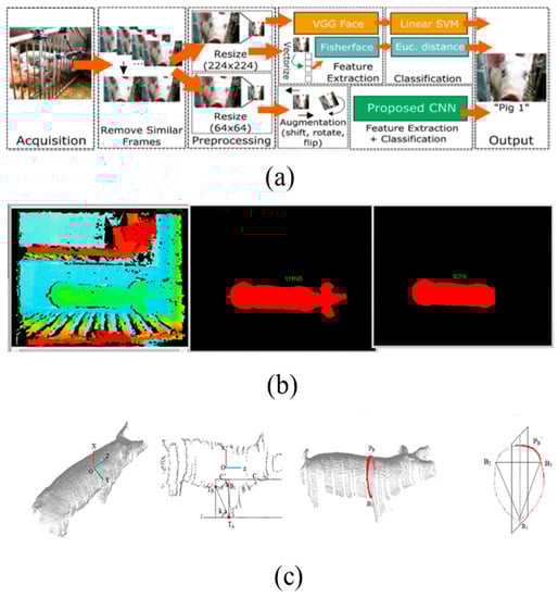 - Wada, N.; Shinya, M.; Shiraishi, M. Pig face recognition using eigenspace method. ITE Trans. Media Technol. Appl. 2013, 1, 328–332. [Google Scholar] [CrossRef]