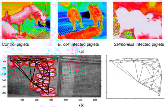 - Islam, M.M.; Ahmed, S.T.; Mun, H.-S.; Bostami, A.B.M.R.; Kim, Y.-J.; Yang, C.-J. Use of thermal imaging for the early detection of signs of disease in pigs challenged orally with Salmonella typhimurium and Escherichia coli. Afr. J. Microbiol. Res. 2015, 9, 1667–1674. [Google Scholar] [CrossRef]