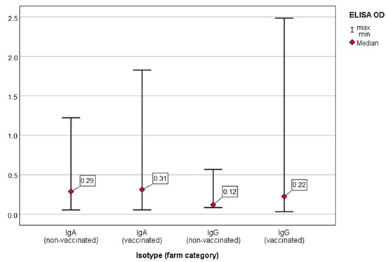 3.3. Correlation between Salmonella Prevalence in Pooled Faecal Samples and Anti-Salmonella IgG and IgA OD Values