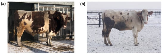 - Wu, H.J.; Ma, X.L.; Liu, A.R.; Liu, Y.S.; Zhao, J.H.; Wang, D.S.; Liu, H.Z. Breeding history and current improvements of Sanhe Cattle in Inner Mongolia. China Cattle Sci. 2012, 38, 48–52. [Google Scholar]