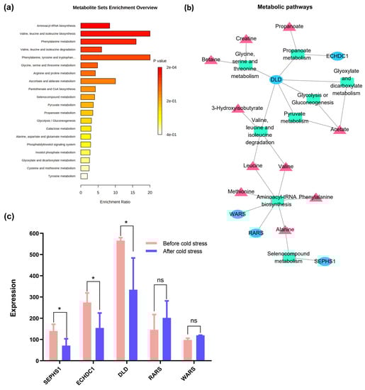 3.3. Metabolite Changes in the Serum of Sanhe Cattle after Severe Cold Stress