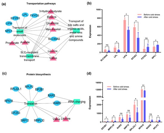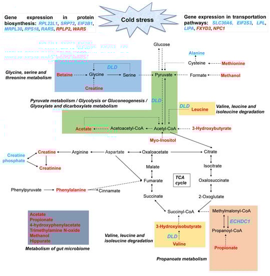 3.6. Significant Biological Processes Related to Metabolites’ Regulation in Severe Cold Stress