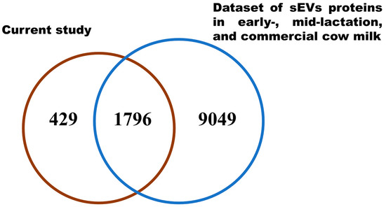 Proteomic analysis of milk sEVs. The Venn diagram displays the number of identified proteins in milk sEVs.