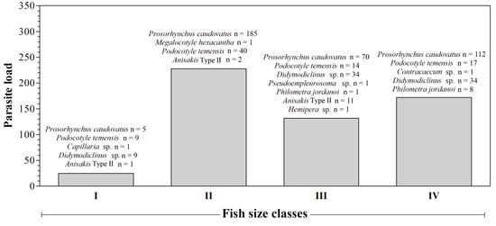 | Anisakis sp. type II | r = 0.06, p = 0.65 | r = 0.12, p = 0.32 |