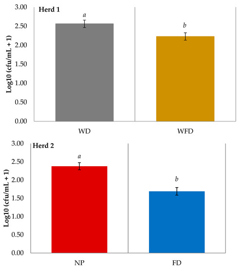 | Herd 1 | WD vs. WFD | p-Value | Herd 2 | NP vs. FD | p-Value |
