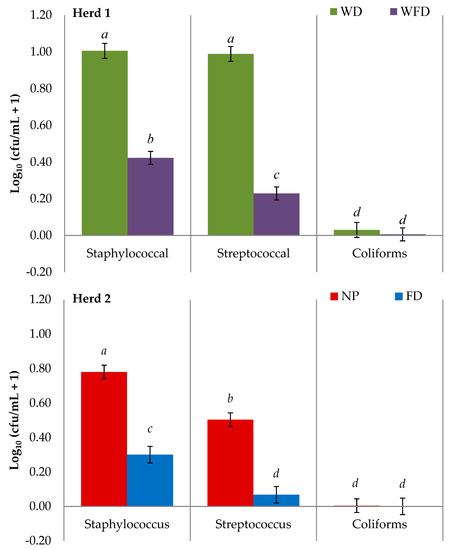 - Galton, D.M.; Petersson, L.G.; Merrill, W.G. Effects of pre-milking udder preparation practices on bacterial counts in milk and teats. J. Dairy Sci. 1986, 69, 260–266. [Google Scholar] [CrossRef]