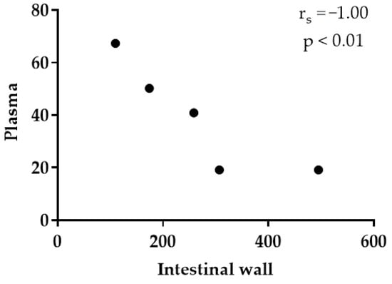 Figure 1. Correlation between plasma (ng/mL) and intestinal wall (ng/g DM).
